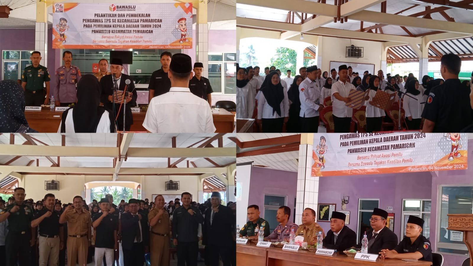 Ciamis- Sebanyak 114 Pengawas Tempat Pemungutan Suara (PTPS) se-Kecamatan Pamarican, Kabupaten Ciamis resmi dilantik oleh Ketua Panwascam Kecamatan Pamarican Ana Sunarya, S.IP,. yang berlangsung di Aula Desa Neglasari Kecamatan Pamarican,”Senin (04/11/2024).