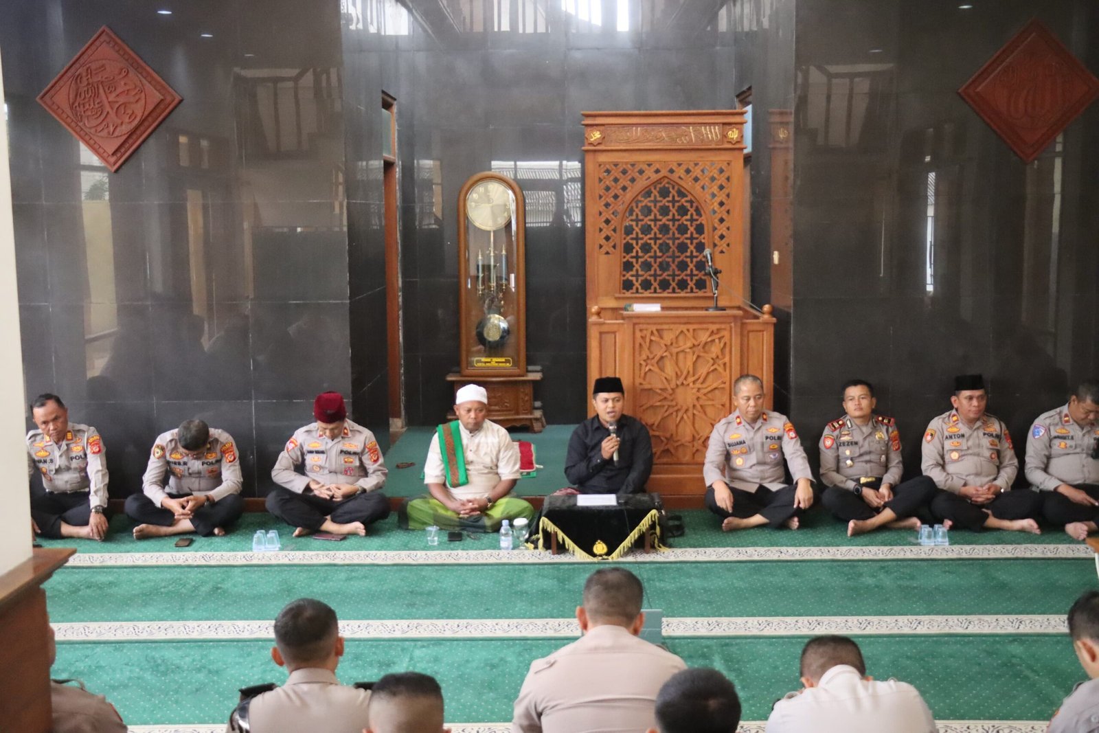 Acara penting ini turut dihadiri oleh jajaran petinggi Polres Ciamis, termasuk Wakapolres Ciamis, Kompol Sujana, S.Pd., serta Kabag Ops, Kabag SDM, dan para Pejabat Utama (PJU) Polres Ciamis, menunjukkan komitmen pimpinan dalam membina rohani seluruh anggotanya.