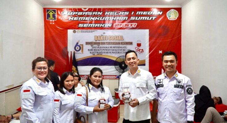 Medan – Dalam rangka memperingati Hari Bhakti Pemasyarakatan (HBP) ke-61, Kementerian Imigrasi dan Pemasyarakatan RI, yang mengusung tema “Pasti Bermanfaat Untuk Masyarakat”. Direktorat Jenderal Pemasyarakatan, Kantor Wilayah Sumatera Utara menyelenggarakan kegiatan bakti sosial berupa donor darah dan pemeriksaan kesehatan gratis, Kamis (17/04/2025).