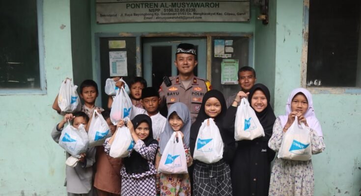 Garut,Jejak-kriminal.com-Suasana penuh kebahagiaan mewarnai kegiatan yang di gelar oleh Polres Garut dalam rangka menyambut Hari Raya Idul Fitri 1446 H, Sebanyak puluhan anak-anak yatim piatu dan duafa dari Pondok Pesantren Al-Musyawaroh Cilawu menerima paket baju lebaran secara gratis dari Wakapolres Garut Kompol Bayu Tri Nugraha Hidayat, A.Md., S.E., S.I.K., M.M, Senin (24/03/2025).