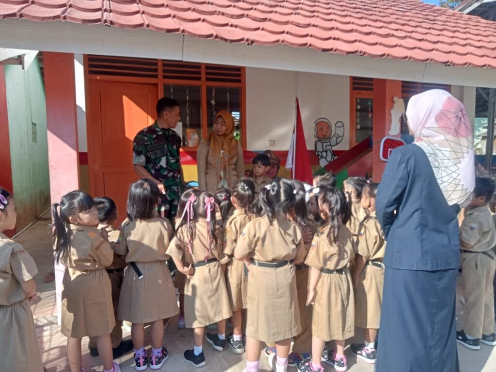 Sumedang- Guna meningkatkan kedisiplinan dan rasa cinta terhadap negara kesatuan republik Indonesia,Bati Tuud Koramil 1010/1010 Serma Juhana melaksanakan pemberian materi wawasan kebangsaan kepada Siswa/Siswi TK Pertiwi bertempat di TK Bakti Pertiwi Dusun Cipicung RT 05/01 Desa. Darmajaya Kecamatan Darmaraja Kabupaten Sumedang.