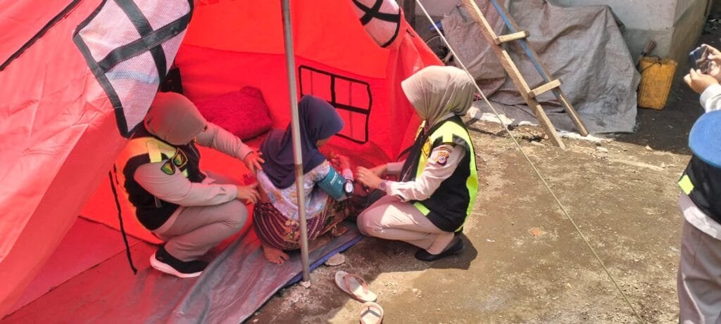 Garut | Sie Dokkes Polres Garut laksanakan kegiatan pemeriksaan kesehatan kepada warga yang menjadi korban gempa bumi di Desa Padaawas Kecamatan Pasirwangi Kabupaten Garut. Rabu (2/10/2024).