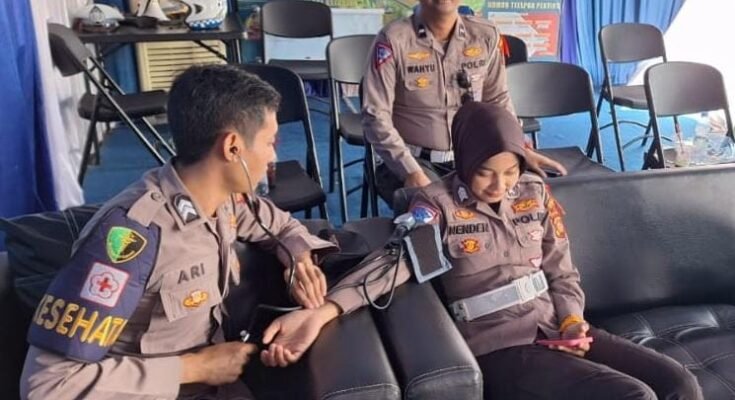 “Ketiga anggota Dokkes Polres Ciamis Polda Jabar mendatangi personel di Pos Terpadu, Pos Pengamanan dan Pos Pelayanan Operasi Ketupat Lodaya 2025 Polres Ciamis. Mulai dari Pos Pam Terpadu Alun-alun Ciamis, Pos Pam Terminal dan Pos Pam Stasiun KA Ciamis,” kata Bripka Firman Sahrul Asih.