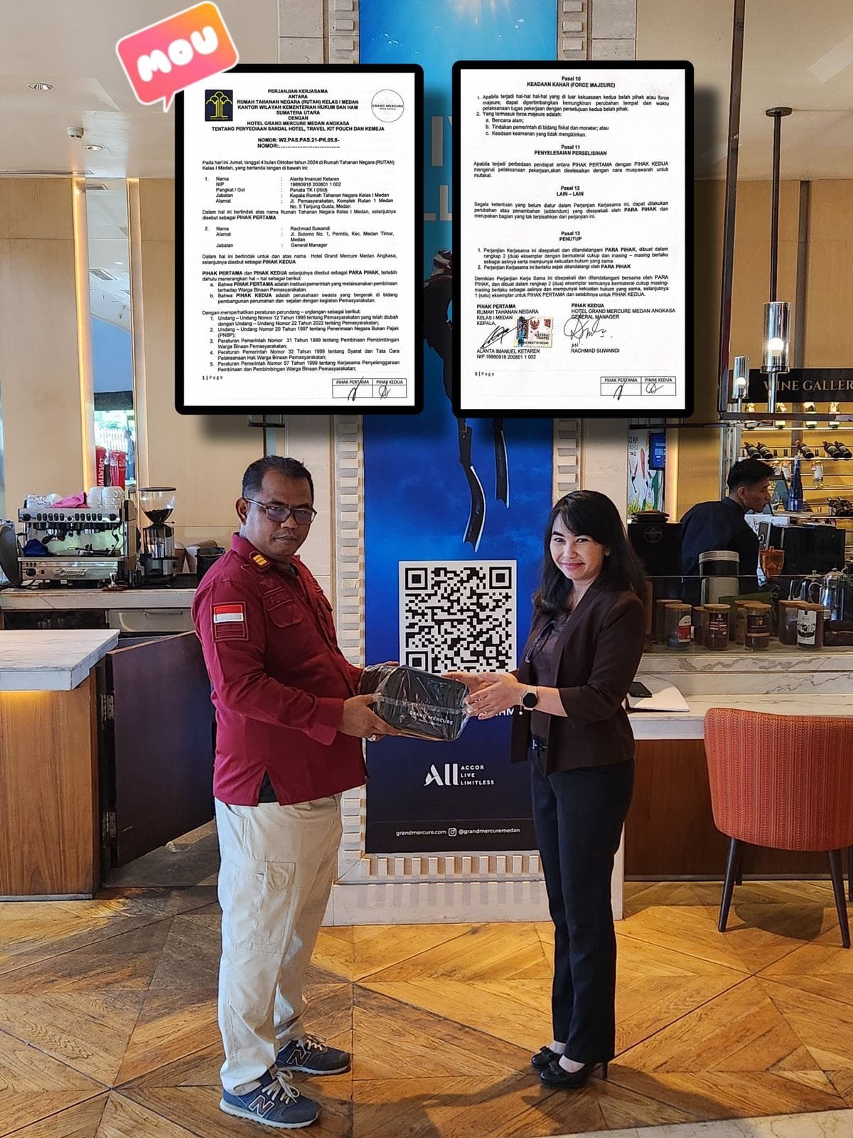 Medan ,Jejak-kriminal.com – Rumah Tahanan Negara (Rutan) Kelas I Medan melaksanakan kegiatan kerja sama penandatanganan MoU dengan Hotel Grand Mercure Medan Angkasa dalam hal penyediaan sandal hotel, travel kit pouch dan kemeja. Selasa (10/12).