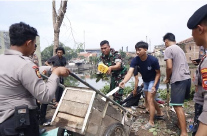 Personil gabungan TNI-POLRI tersebut dalam rangka membantu membersihkan material bangunan rumah warga yang hancur akibat angin puting beliung.