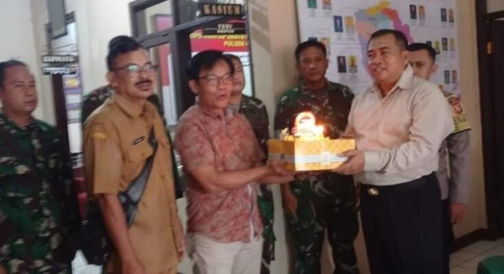 Ciamis – Momentum Hari Ulang Tahun Bhayangkara Ke-79 dimaknai dengan semangat kebersamaan dan sinergitas antarinstansi di Kecamatan Cipaku. Pada Selasa (01/07/2025), sekitar pukul 11.00 WIB, bertempat di Mapolsek Cipaku, jajaran Koramil Cipaku bersama pemerintah Kecamatan Cipaku menyerahkan secara langsung ucapan Dirgahayu Bhayangkara Ke-79 Tahun 2025 kepada Polsek Cipaku Polres Ciamis.