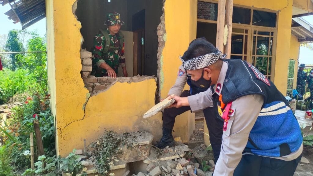 Garut | Anggota Polsek Pasirwangi dan Koramil 1112/Samarang Pasirwangi melaksanakan kegiatan kerja bakti pasca gempabumi di Kp. Negla, Desa Barusari, Kecamatan Pasirwangi, Kabupaten Garut. Jumat (20/09/2024).