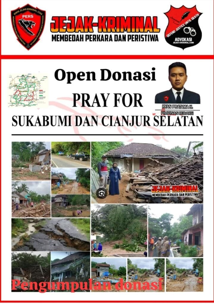 Kami membuka open donasi bagi siapa saja yang ingin memberikan bantuan untuk meringankan beban saudara-saudara kita yang terdampak bencana di Sukabumi & Cianjur Selatan. Berdasarkan hasil lapangan dan koordinasi dengan BPBD Sukabumi, bencana yang terjadi memang membutuhkan uluran tangan kita bersama.