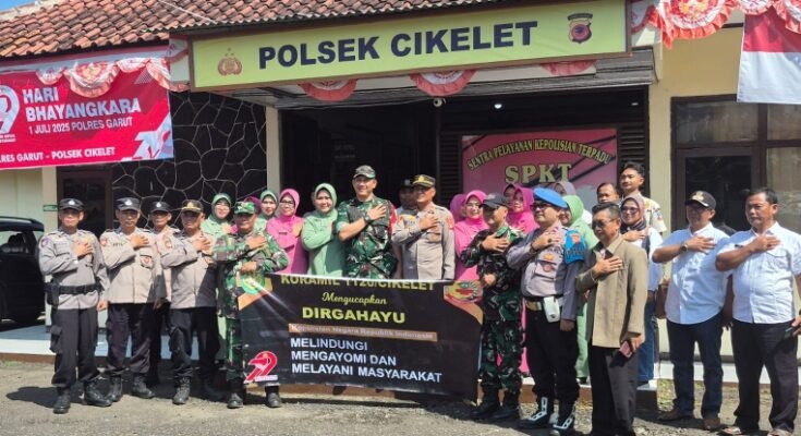 Jejak-kriminal.com-Garut Selasa 2 Juli 2025 Dalam rangka memperingati Hari Ulang Tahun (HUT) Bhayangkara ke-79 jajaran Forkopimcam Cikelet bersama unsur masyarakat melaksanakan kunjungan silaturahmi dan memberikan ucapan selamat kepada jajaran Polsek Cikelet dan Bhayangkari Ranting Cikelet, bertempat di Mapolsek Cikelet.