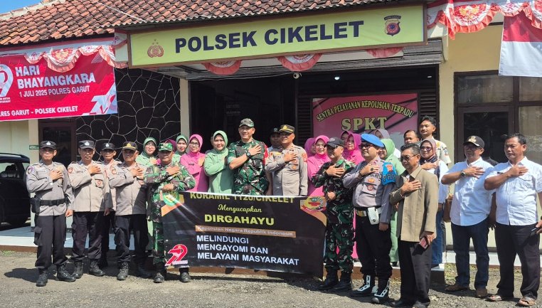 Jejak-kriminal.com-Garut Selasa 2 Juli 2025 Dalam rangka memperingati Hari Ulang Tahun (HUT) Bhayangkara ke-79 jajaran Forkopimcam Cikelet bersama unsur masyarakat melaksanakan kunjungan silaturahmi dan memberikan ucapan selamat kepada jajaran Polsek Cikelet dan Bhayangkari Ranting Cikelet, bertempat di Mapolsek Cikelet.