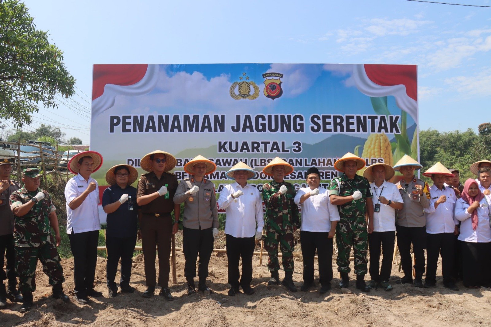 Garut – Dalam rangka mendukung program Swasembada Pangan Nasional Tahun 2025, Polres Garut bersama unsur Forkopimda Kabupaten Garut, tokoh masyarakat, dan kalangan pesantren melaksanakan kegiatan Penanaman Jagung Serentak yang dipusatkan di Pondok Pesantren Tarbiyatul Aulad, Kampung Tambak Baya, Desa Dano, Kecamatan Leles, Kabupaten Garut, pada Rabu (06/08/2025).