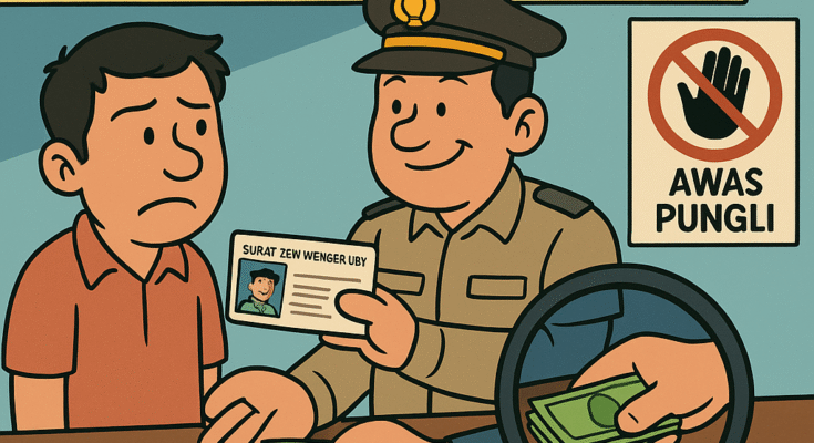 Warga berinisial DN dipalak hingga Rp850 ribu demi selembar SIM A—angka yang mencolok jauh dari tarif resmi Rp120 ribu sebagaimana ditetapkan PP No. 76 Tahun 2020. Kasus ini bukan insiden tunggal. Ini pola. Pungli bukan lagi dilakukan di bawah meja, tapi sudah menjelma menjadi “prosedur baru” yang dilegalkan secara diam-diam.