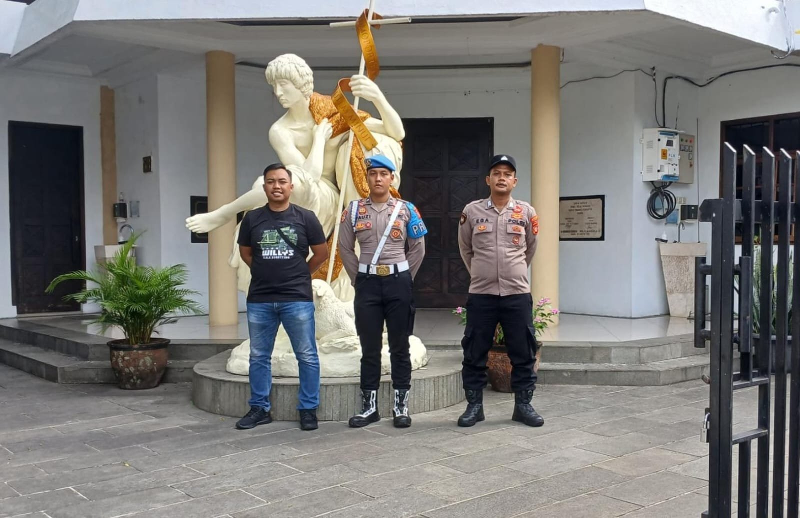 “Pengamanan yang kami lakukan, baik pengecekan didalam gereja, disekitar dan barang bawaan jemaah untuk menjaga dari hal yang dapat mengganggu jalannya Ibadah umat Kristiani. Anggota juga melaksanakan pengaturan lalu lintas agar tidak terjadi kecelakaan dan kemacetan jalur. Ini semua kami lakukan sesuai dengan tupoksi Polri sebagai pelindung, pengayom dan pelayan masyarakat,” kata Kompol Alan Dahlan.