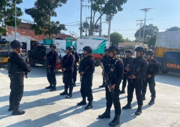 Medan,Tim Subden Wanteror Detasemen Gegana Sat Brimob Polda Sumut melaksanakan Pengamanan dan Pengawalan terhadap container yang berisikan kelengkapan Event Internasional F1 Powerboat Tahun 2024, dari Terminal Peti Kemas Pelabuhan Belawan menuju ke Kota Balige, Sabtu (24/02/24) malam sekira pukul 19.00 Wib.