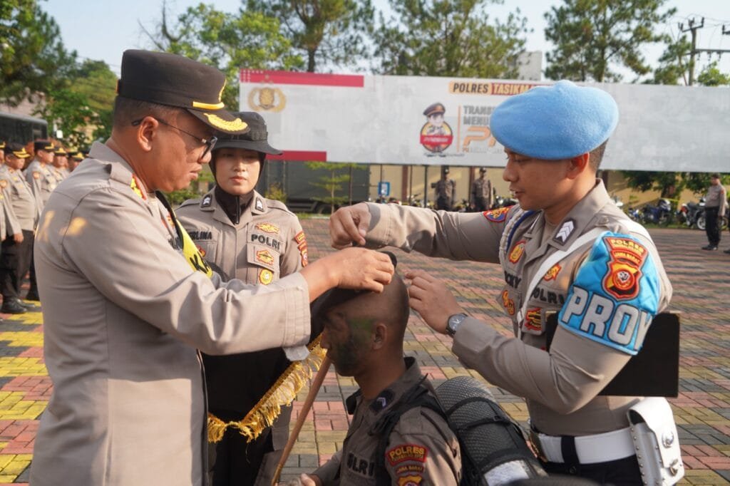 Polres Tasik Kota – Sebanyak 20 Bintara Remaja angkatan 51 mengikuti tradisi pembaretan Kamis 17 Oktober 2024 Pagi.