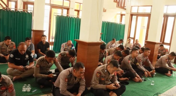 Ciamis – Dalam rangka memperkuat integritas dan profesionalisme personelnya, Polres Ciamis menggelar pembinaan rohani dan mental (Binrohtal) pada Kamis (31/7/2025). Kegiatan yang berlangsung mulai pukul 08.00 WIB ini dipusatkan di Masjid Al-Hidayah Polres Ciamis dan turut diikuti secara daring via Zoom Meeting oleh seluruh Polsek jajaran di wilayah hukum Polres Ciamis.
