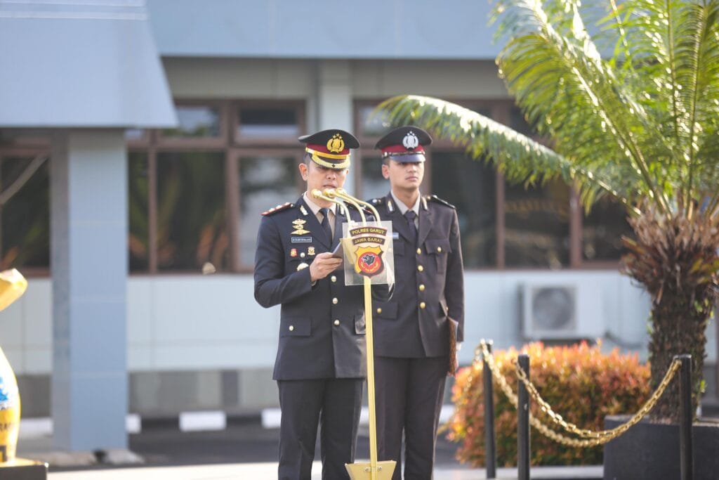 Upacara ini dihadiri oleh Kapolres Garut AKBP Mochamad Fajar Gemilang, S.I.K., M.H., M.I.K., selaku Inspektur Upacara, Wakapolres Garut Kompol Dhoni Erwanto, S.Si., S.I.K., M.H., M.IK, serta para pejabat utama Polres Garut, anggota Polri, dan ASN Polres Garut.