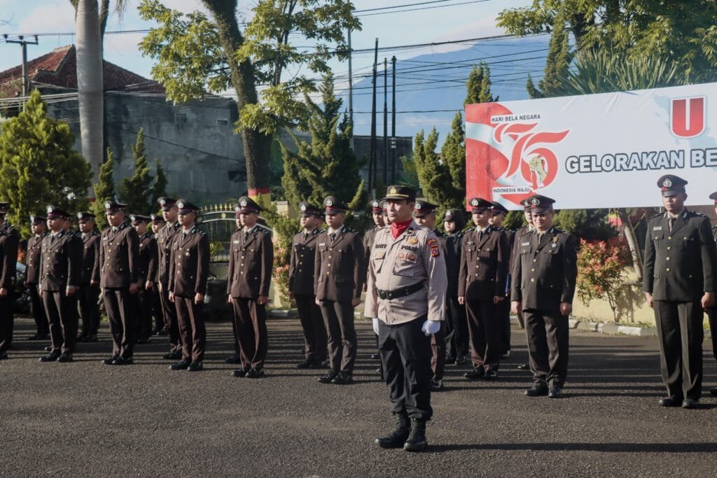 Garut – Polres Garut menggelar Upacara Hari Bela Negara ke-76 Tahun 2024 di Lapangan Apel Mapolres Garut, Kamis (19/12/2024).
