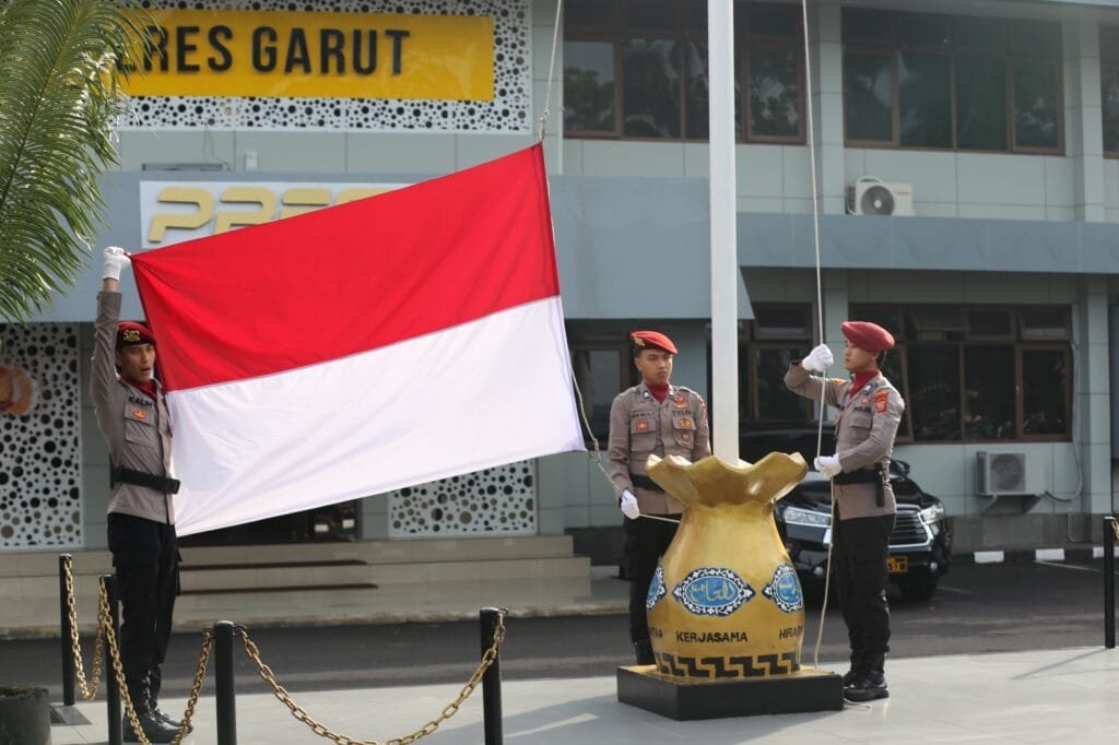 Upacara tersebut dihadiri oleh seluruh jajaran Polres Garut, termasuk para Kabag, Kasat, Kasie, perwira, serta personil Polri dan ASN.