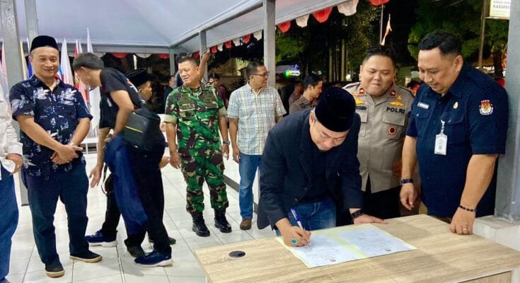 CIAMIS ~ Polres Ciamis Polda Jabar menghadiri rangkaian kegiatan tahapan Pilkada Serentak 2024 yang dilaksanakan oleh KPU Kabupaten Ciamis. Salah satunya penandatangan berita acara dalam rangka menjelang Hari Pemungutan dan Perhitungan Suara Pilkada Serentak 2024.