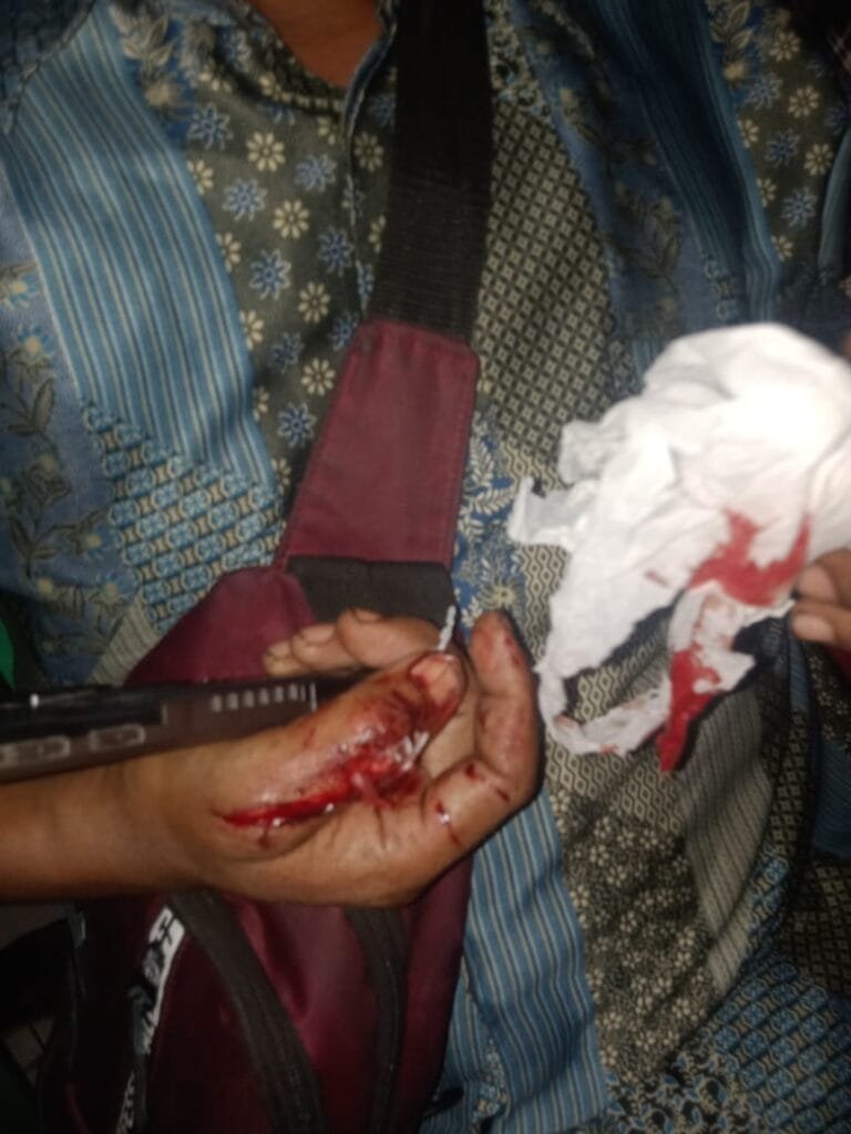 Lanjutan,pintu kaca tersebut pecah lalu mengenakan jari jempol sebelah kanan sobek dan mengeluarkan darah cukup banyak,pada kejadian tersebut pihak polisi tidak langsung membawa wartawan online untuk dibawa ke Rumah Sakit untuk dibawa berobat,melainkan pihak polisi yang ada di kantor Polsek Medan Barat mengajak wartawan tersebut keatas dengan keadaan darah keluar terus sehinggah wartawan online tersebut wajah nya pucat